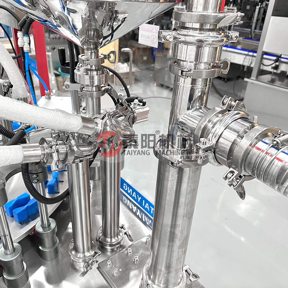 Эта машина для наполнения и покрытия лосьонов -лосьона Taiyang имеет стабильный поворотный стол в структуре. Поворот работает плавно и точно, обеспечивая непрерывность и гладкость процессов заполнения и закрытия. Машина для наполнения и покрытия лосьона Taiyang Cream особенно подходит для заполнения бутылок с небольшим объемом, бутылок специальных форм, водных растворов, лосьонов, кремов и масел. Он может идеально адаптироваться как к высококачественным водным растворам, так и кремам с определенной вязкостью. Во время процесса заполнения скорость потока может точно контролировать, чтобы убедиться, что каждый пакет с небольшим объемом может быть точно заполнена, избегая отходов и недостаточного заполнения. Машина для наполнения и покрытия лосьонов Taiyang Lotion Cream-идеальное оборудование для достижения эффективного и точного производства воды, лосьонов, лосьонов, кремов и других продуктов.